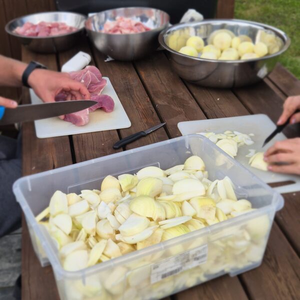 Beidzot mēs: divas lieliskas ģimenes – kaimiņi, atveram mūsu ēdienu kastroļus apmeklētājiem un aicinām visus doties aizraujošā sajūtu ceļojumā.