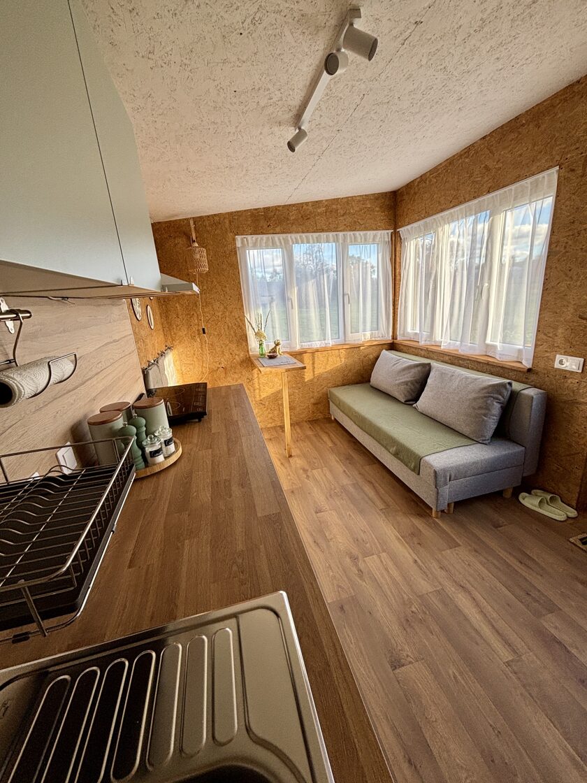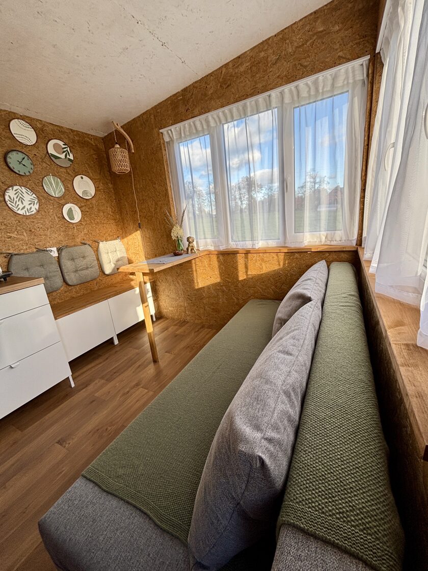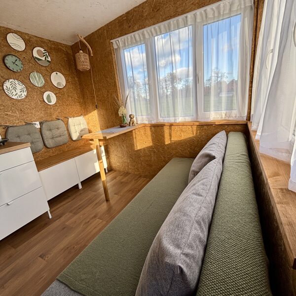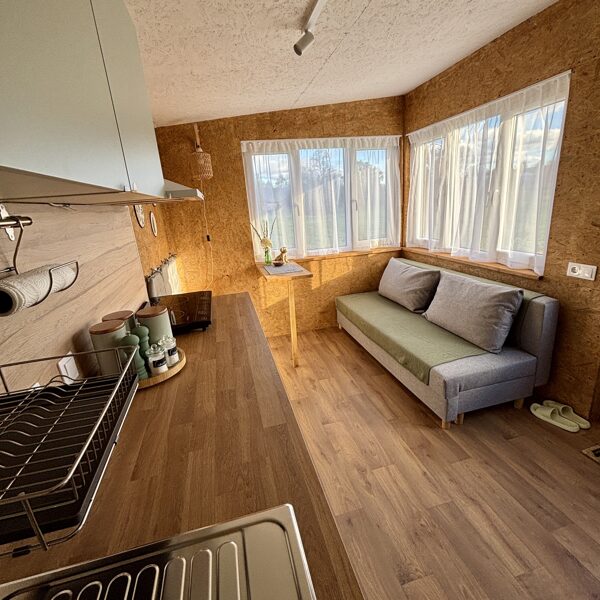 🛏️ Dzīvošana un ērtības paredzētas diviem viesiem, ar ērtu dīvāngultu nakšņošanai.