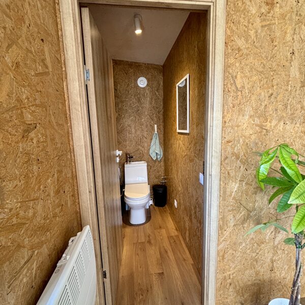 Mājiņā ir divas tualetes (viena pielāgota cilvēkiem ar invaliditāti) un duša, lai Tava uzturēšanās būtu ērta jebkuros laikapstākļos.