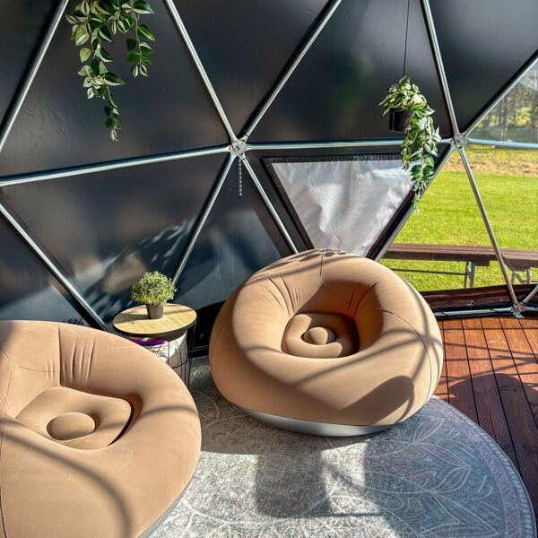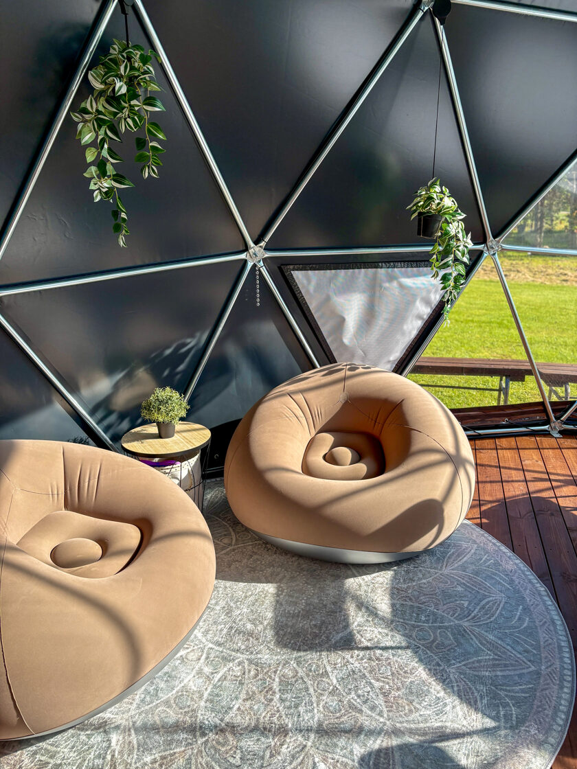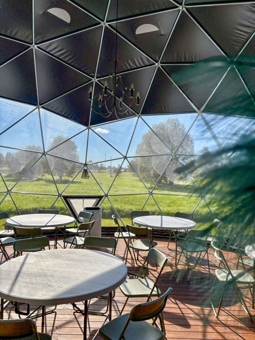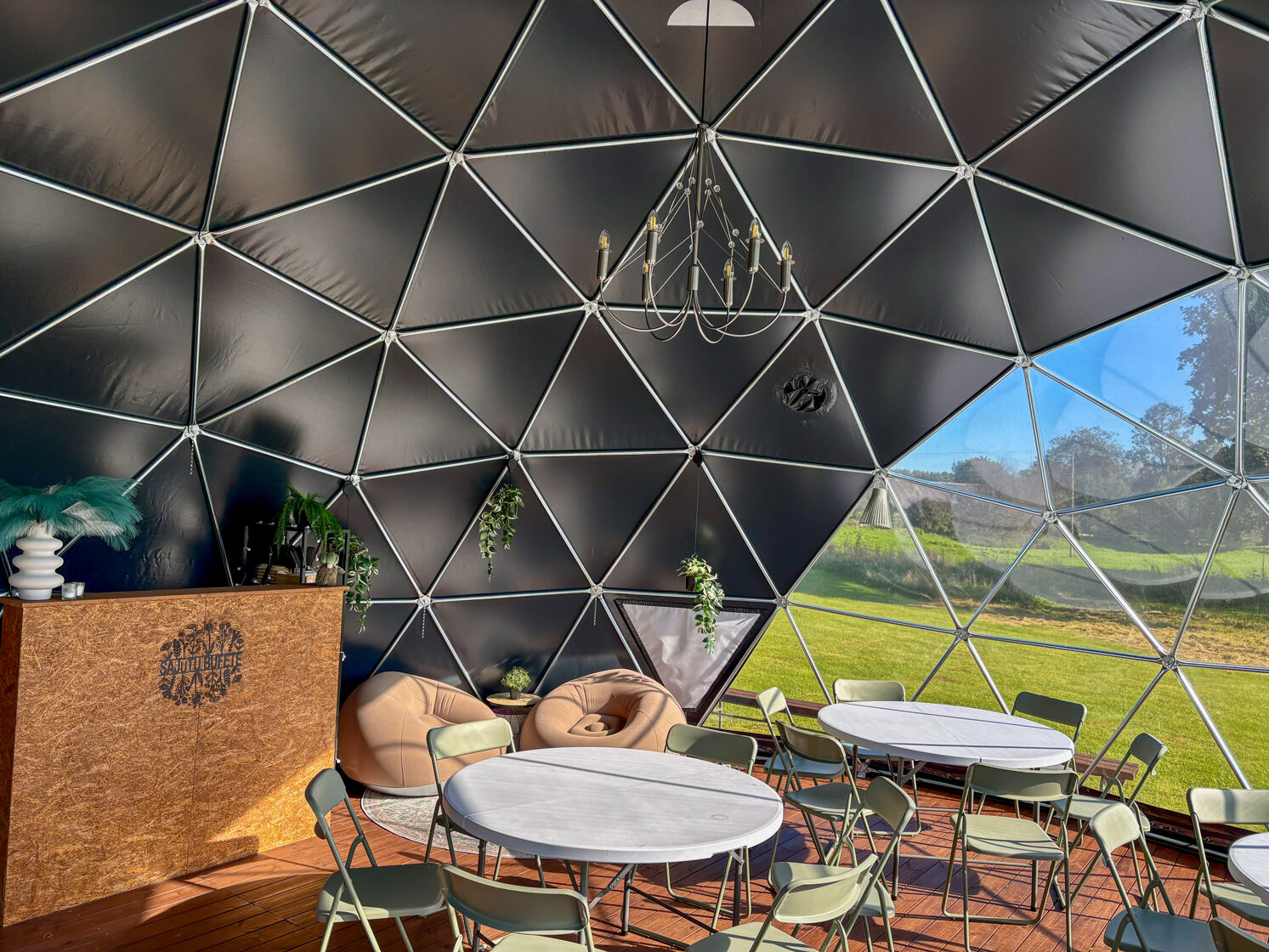Sajūtu istaba ir kupolveida telpa ar plašu panorāmas skatu uz dabisko pļavas ainavu – vieta, kur daba kļūst par svētku fonu. Šeit iespējams rīkot pasākumus un svinības līdz 30 cilvēkiem, baudot harmonisku vidi un pārdomātas ērtības.