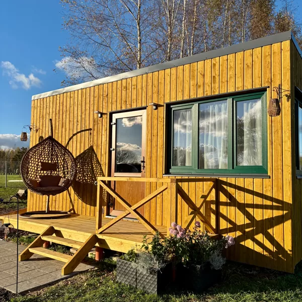 Mājiņā ir dīvāngulta nakšņošanai. Pieejamas divas tualetes (viena pielāgota cilvēkiem ar invaliditāti) un duša, nodrošinot komfortu jebkuros laikapstākļos.
